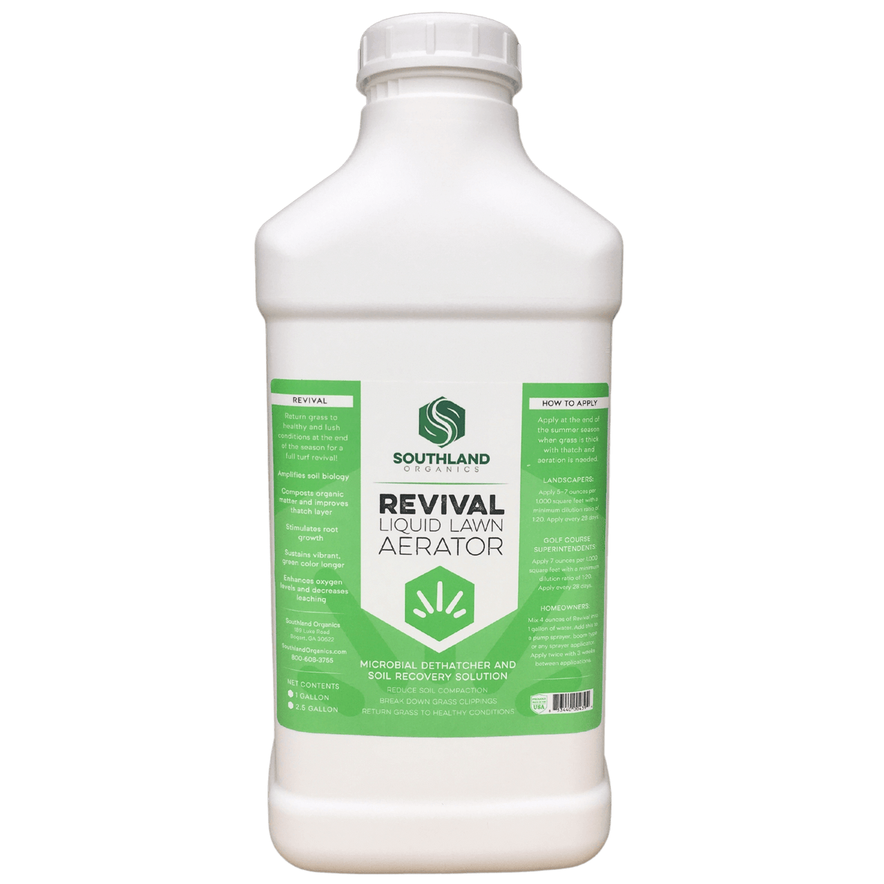 Revival is the ultimate microbial dethatcher, liquid aerator and compost accelerant. It revives turf to healthy and lush conditions.
